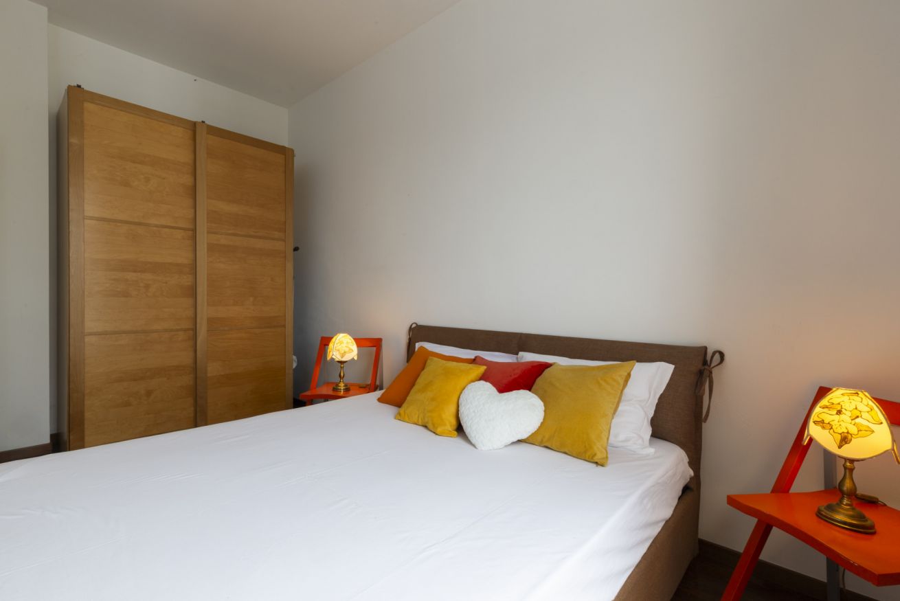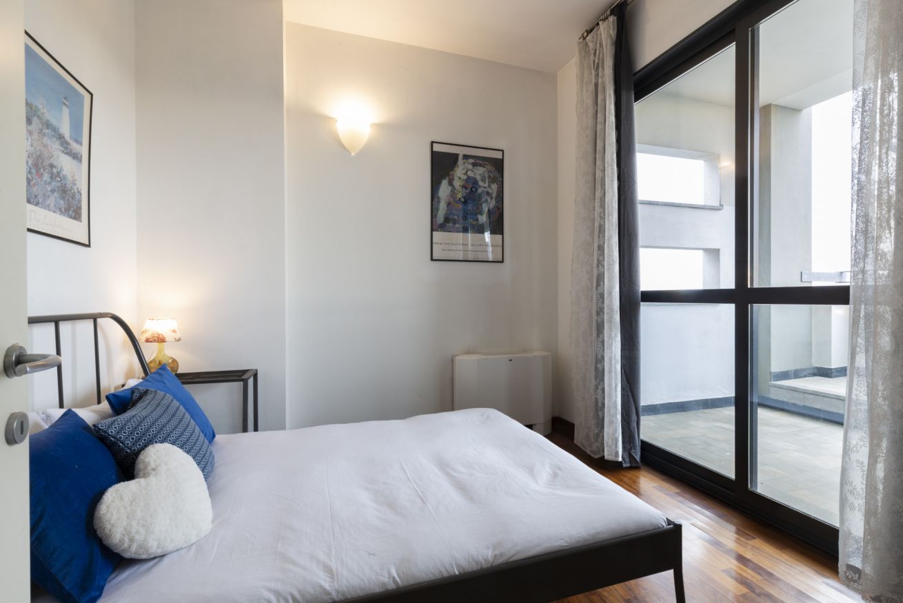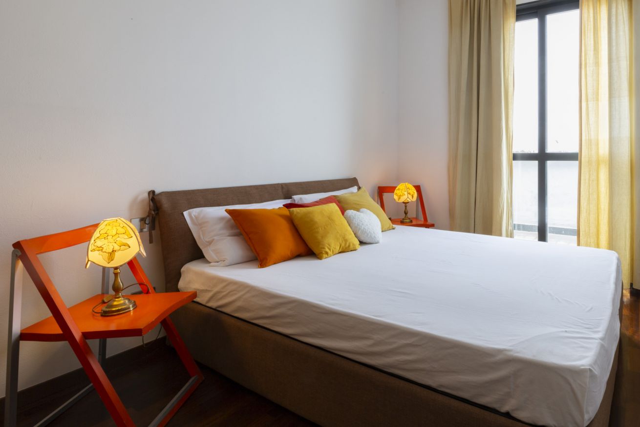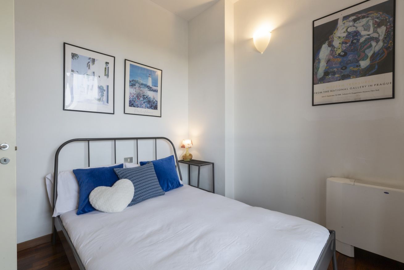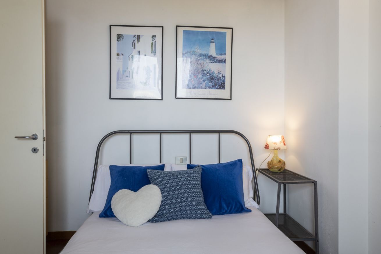 La SECONDA CAMERA da letto ha un accesso privato a un terrazzino indipendente, perfetto per momenti di relax. Anch’essa dispone di letto matrimoniale, due abat-jour e armadio a due ante.