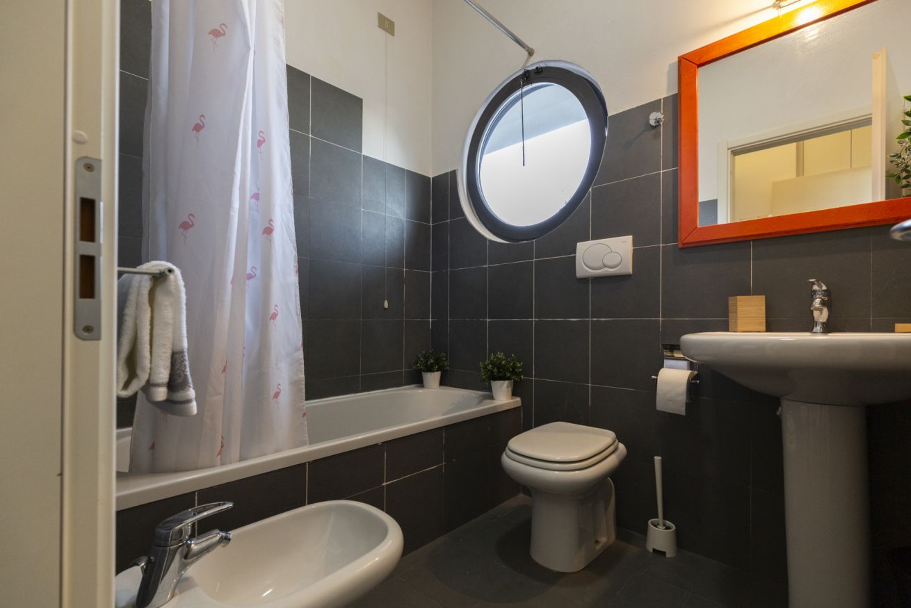 Il BAGNO, finestrato, è dotato di servizi essenziali, vasca lunga con doccino ee scaldasalviette.