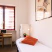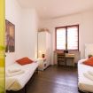 1 camera da letto matrimoniale molto spaziosa con ampia armadiatura, una seconda camera con 2 letti singoli, armadi e 1 scrivania. Completa la soluzione 1 bagno con doccia, wc, bidet e lavatrice
