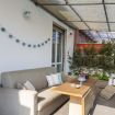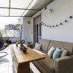Lo splendido terrazzo è dotato di un divano, ed un tavolino per potersi gustare un aperitivo all’ora del tramonto, godendosi la vista sulla città.