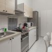 - cucina abitabile completamente accessoriata con fornelli a gas, forno, microonde, ampio frigorifero, lavastoviglie, tavolo per quattro e lavatrice