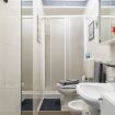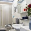 Il bagno si compone di WC, bidet, doccia, lavandino, lavatrice