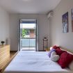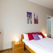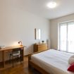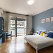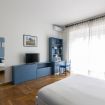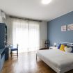 Le due camere da letto sono spaziose e ben arredate: la prima con letto matrimoniale, comodini con abajour, armadio a cinque ante, scrivania e un bel balcone che collega alla zona cucina; la seconda con letto matrimoniale, TV 32", comodini con abajour, scrivania, specchio a figura intera e un bel balcone con affaccio su strada che collega alla sala.