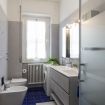 Il bagno è dotato di servizi essenziali, doccia, scaldasalviette e lavatrice.