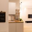 SOGGIORNO CON CUCINA A VISTA completamente accessoriata dotata di frigorifero con freezer, piano a induzione, lavastoviglie, forno, tostapane, bollitore e moka.