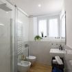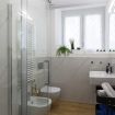 Il bagno, elegantemente rifinito, dispone di tutti i servizi essenziali, una doccia, scaldasalviette e phon.