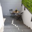 Con una superficie di 74 metri quadrati, l'appartamento vanta all'ingresso uno spazio esterno dedicato con tavolino e sedie perfetto per trascorrere momenti di relax.