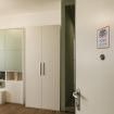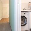 Completa l’appartamento un disimpegno con angolo lavanderia a scomparsa dotato di lavatoio, lavatrice, asse e ferro da stiro.