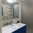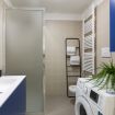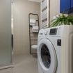 Il bagno, elegantemente rifinito, dispone di tutti i servizi essenziali, doccia, scaldasalviette e lavatrice.