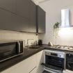 - CUCININO dotato di frigorifero con freezer, cucina a gas a quattro fuochi, cappa in acciao inox, forno, microonde, lavastoviglie, bollitore e macchina per il caffè Nespresso.