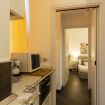 - Soggiorno con cucina a vista completamente accessoriata composta da forno, frigorifero, lavastoviglie, forno microonde, macchina del caffe', Nespresso, bollitore elettrico, tostapane e stoviglie. Il soggiorno e' composto da un divano letto e tv da 32"