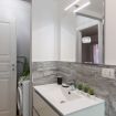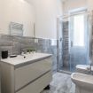 Il bagno, elegantemente rifinito, dispone di tutti i servizi essenziali, doccia e scaldasalviette.
