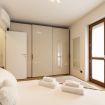 - una CAMERA con letto matrimoniale, smart TV 32" full HD, ampio armadio guardaroba e terrazza con vista sul giardino condominiale.