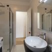 Completa l'appartamento un BAGNO dotato di tutti i servizi essenziali, box doccia, asciugacapelli e lavatrice.