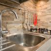 - zona NOTTE/GIORNO con angolo cottura dotato di fornelli a gas, frigorifero con freezer, lavastoviglie da 45cm, microonde, bollitore elettrico, macchina del caffè Nespresso e tostapane. Presente tavolo da pranzo per tre persone.