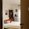 La zona relax dispone di un letto matrimoniale 200x160, piccola libreria, armadio e smart TV 40 pollici.