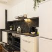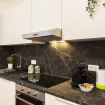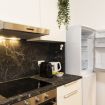 CUCINA ABITABILE completamente accessoriata dotata di frigorifero con freezer, piano a induzione, lavastoviglie, forno, microonde, cappa aspirante, bollitore, macchia del caffè Nespresso.