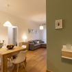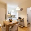 L'appartamento vanta un soggiorno raffinato con cucina a vista, attrezzata con tutti gli elettrodomestici necessari: cucina a gas quattro fuochi, cappa aspirante, frigorifero con freezer, lavastoviglie da 45cm, forno, Nespresso e bollitore. Presente tavolo per quattro persone. Il soggiorno, dotato di un comodo divano letto matrimoniale e una Smart TV da 40 pollici, offre uno spazio perfetto per il relax. La finestra e il balcone con affaccio interno aggiungono luminosità e un tocco di charme.