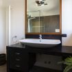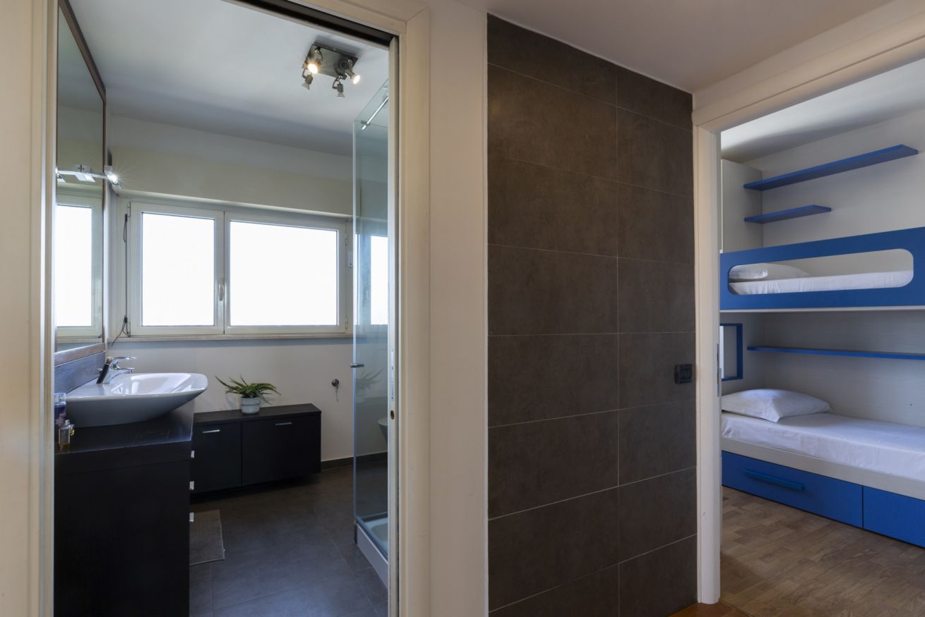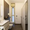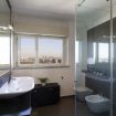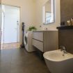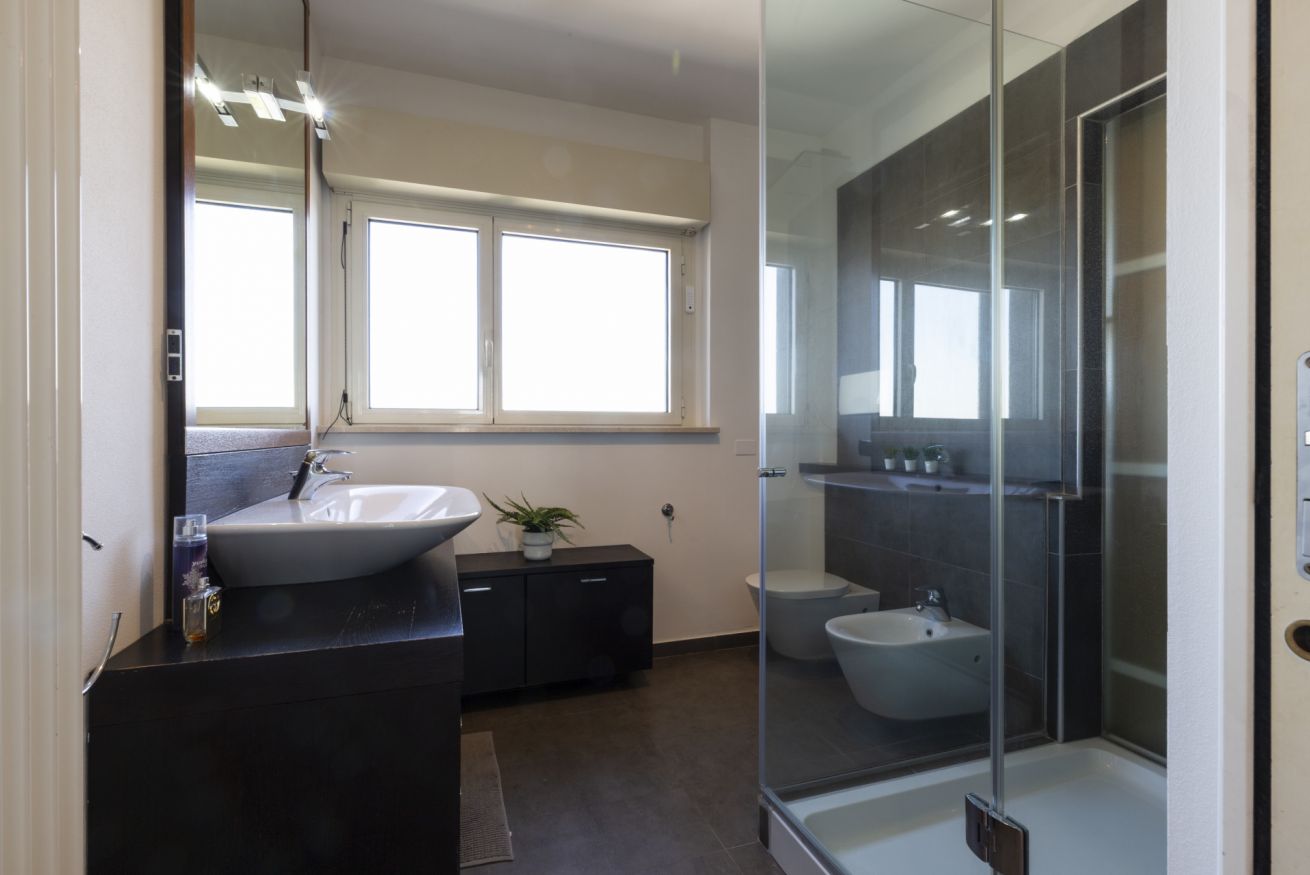 Primo bagno: finestrato ed elegantemente rifinito, dotato di tutti i servizi essenziali e di una grande doccia idromassaggio.