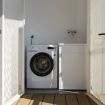 Sulla terrazza si trova piccolo sgabuzzino/lavanderia contenente lavatrice e prodotti per la pulizia.