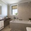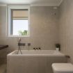 UN PRIMO BAGNO finestrato dotato di vasca con doccino e servizi essenziali.