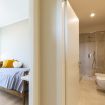 la PRIMA CAMERA MATRIMONIALE con letto queen size, comodini, armadio a due ante e balconcino panoramico;